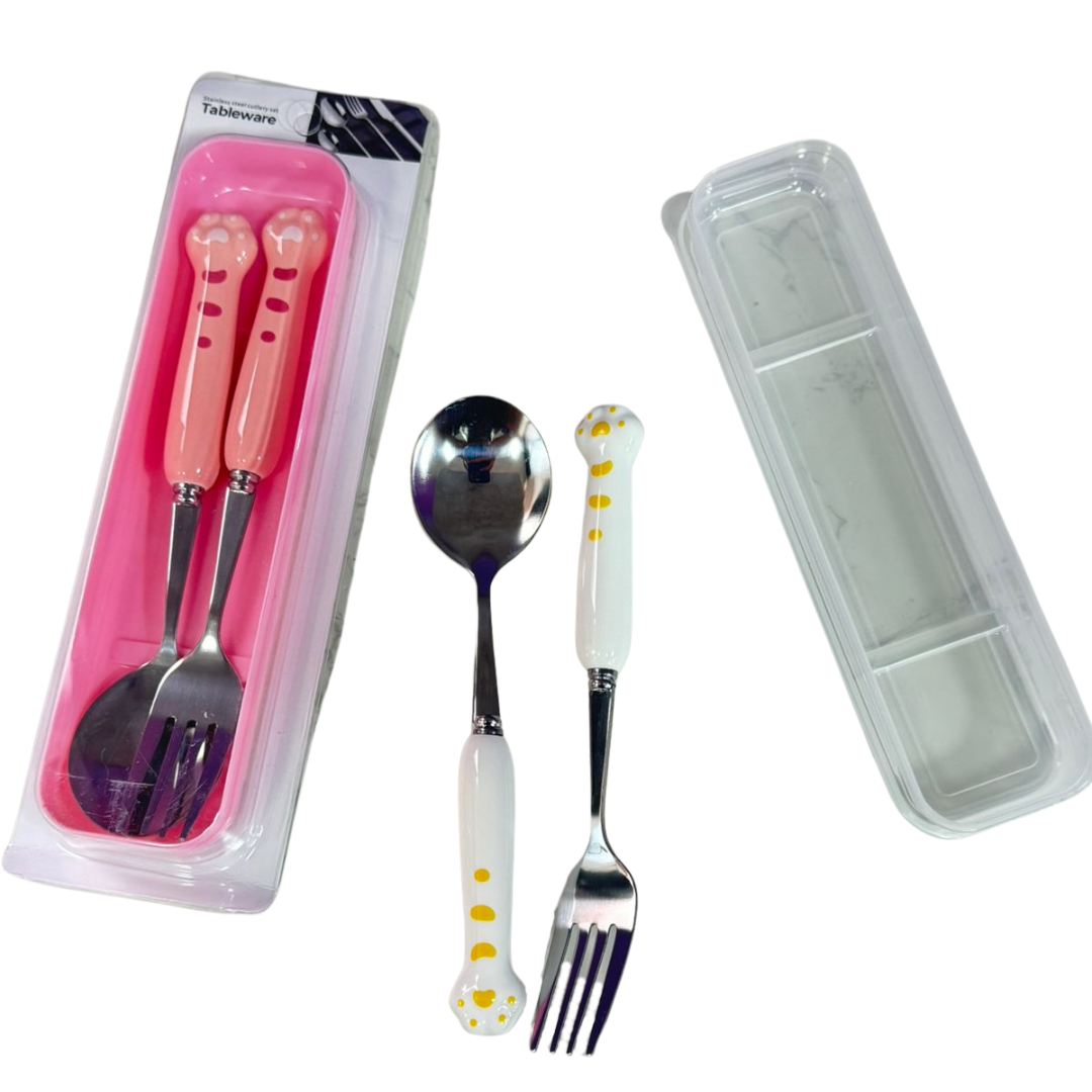 Descubre nuestros encantadores sets de cubiertos portátiles con diseño de patita de gato. Combinando la durabilidad del acero inoxidable con mangos de cerámica o plástico de alta calidad y un estuche transparente para una higiene total, estos sets son la solución perfecta para tus comidas fuera de casa, ya sea en la oficina, la escuela o de picnic.